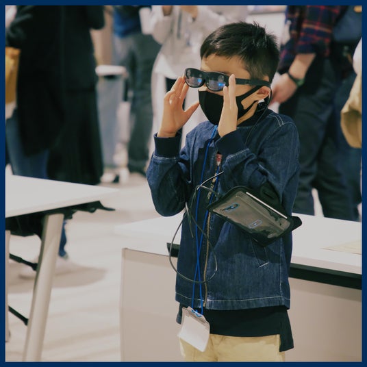 ARグラスをかけて映像内を見渡したり、歩き回ることができる体験です。