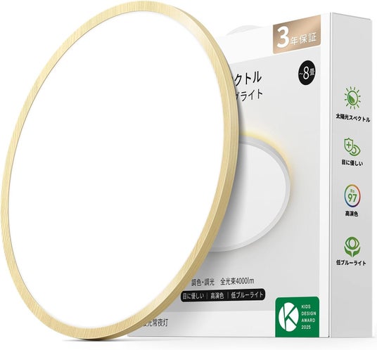独自の光学技術「自然の光」により太陽光スペクトルと似た光を発することができるLED技術を採用したシーリングライトで、一般的なLED照明やシーリングライトよりもブルーライトを最大50%カットすることができ、高演色・フリッカーフリー(ちらつきなし)を実現。目の疲労を緩和して睡眠の質を改善させます。特に発育期の子どもの繊細な目をやさしく守り、長時間の学習や読書にも安心して使用できます。日本の空間設計、光の使い方、インテリア美学を踏まえ、日本のユーザーの細かなニーズに対応した製品です。2025年8月には特定非営利活動法人キッズデザイン協議会が主催する「第19回キッズデザイン賞」の「子どもたちの安全・安心に貢献するデザイン部門」を受賞しています。