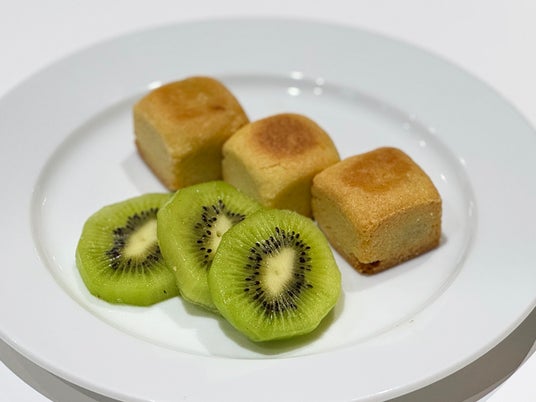 【大熊町】シカクイ キウイ原発事故による全町避難で途絶えた特産品のキウイの栽培を復活させようと大学生らが地元で起業した「ReFruits(リフルーツ)」が開発。町民有志による「おおくキウイ再生クラブ」が栽培したキウイを使用しています。台湾土産の定番の「パイナップルケーキ」をイメージ。キウイの果肉に砂糖を加えて煮詰めたあんを、バターを練りこんだクッキー生地で包みました。キウイの酸味と甘味の絶妙なバランスが楽しめます。リフルーツ代表の原口拓也さんは「日本一のキウイ農家を目指している。地域を代表するお土産品にしていきたい」と話しています。
