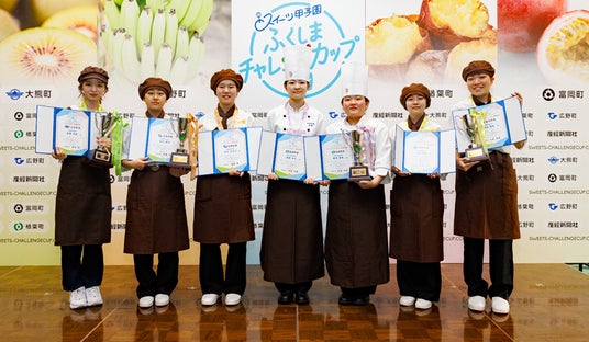 「スイーツの力で福島を応援」をテーマに、福島県の特産品を使ったスイーツ作りを競う高校生を対象としたコンテスト。高校生パティシエ日本一を決める「スイーツ甲子園 高校生パティシエNo.1決定戦」(主催・産経新聞社)の姉妹コンテストとして誕生しました。大熊町のキウイ、富岡町のパッションフルーツ、楢葉町のサツマイモ、広野町のバナナのいずれかを使ったオリジナルレシピを募集。福島県のサッカー施設「Jヴィレッジ」で決勝大会を行い、大熊町賞、富岡町賞、楢葉町賞、広野町賞の4賞を決定。受賞者には、審査員を務める著名パティシエと共同で各食材を使ったスイーツを開発する権利が贈られます。開発したスイーツは、東京・代々木公園で開かれる「ふくしまスイーツフェスティバル」で販売されます。