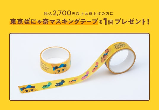 「東京ばにゃ奈クッキーズ」にて、税込2,700円以上お買上げのお客様に「マスキングテープ」をプレゼント。