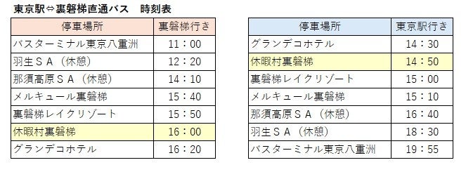 2025年12月~2026年2月の間、東京駅(バスターミナル東京八重洲)と裏磐梯主要ホテルを往復運行する高速バスです。