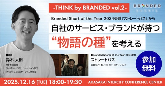 第2回目となるセミナーでは、第1回から受け継ぐ「何をブランデッドするか?」を起点に、「自社のサービス・ブランド が持つ“物語の種”を考える」をテーマに、2024年Branded Shorts of the Yearを受賞した東レによるブラン デッドムービー『ストレートパス』の制作を、ブランドコミュニケーションの視点で紐解き、解説していきます。