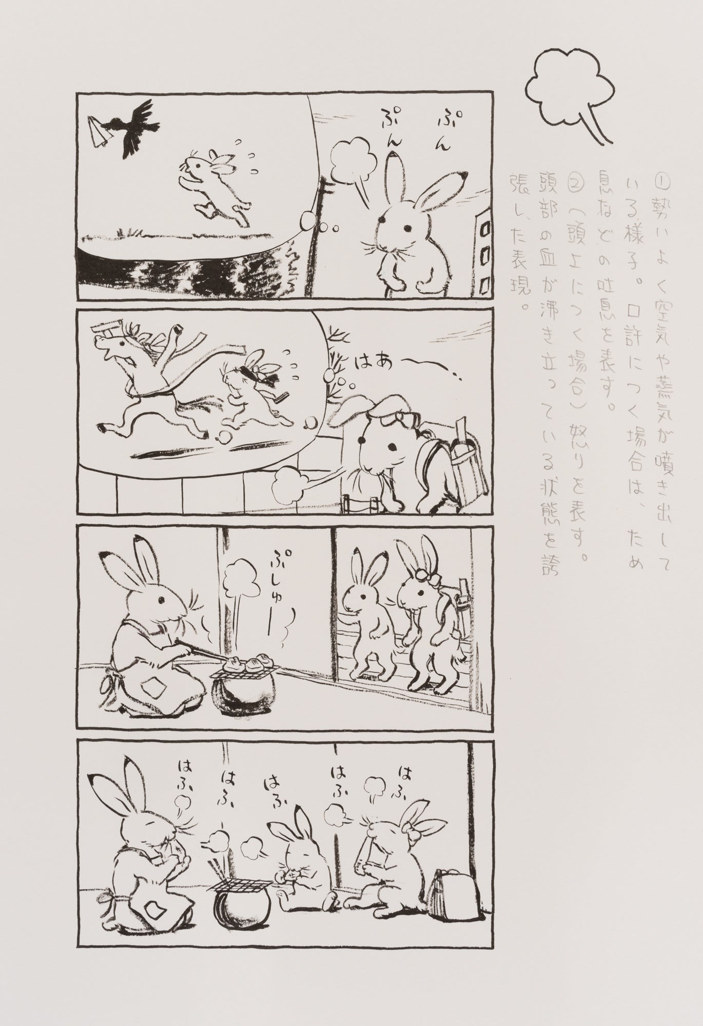 描かれています。それは4 コマ漫画でも、ほのぼのショートストーリーでも、神話ものでも、戦争ものでも変わりません。戦争ものだから急にシリアスに、というふうに描くことがないのです。これまでの作風の流れを切断しないことで、すべてがつながっている、読者はそう感じます。見た目は愛らしいけれども、力強さ、柔軟さ、しぶとさがその線には宿っています。