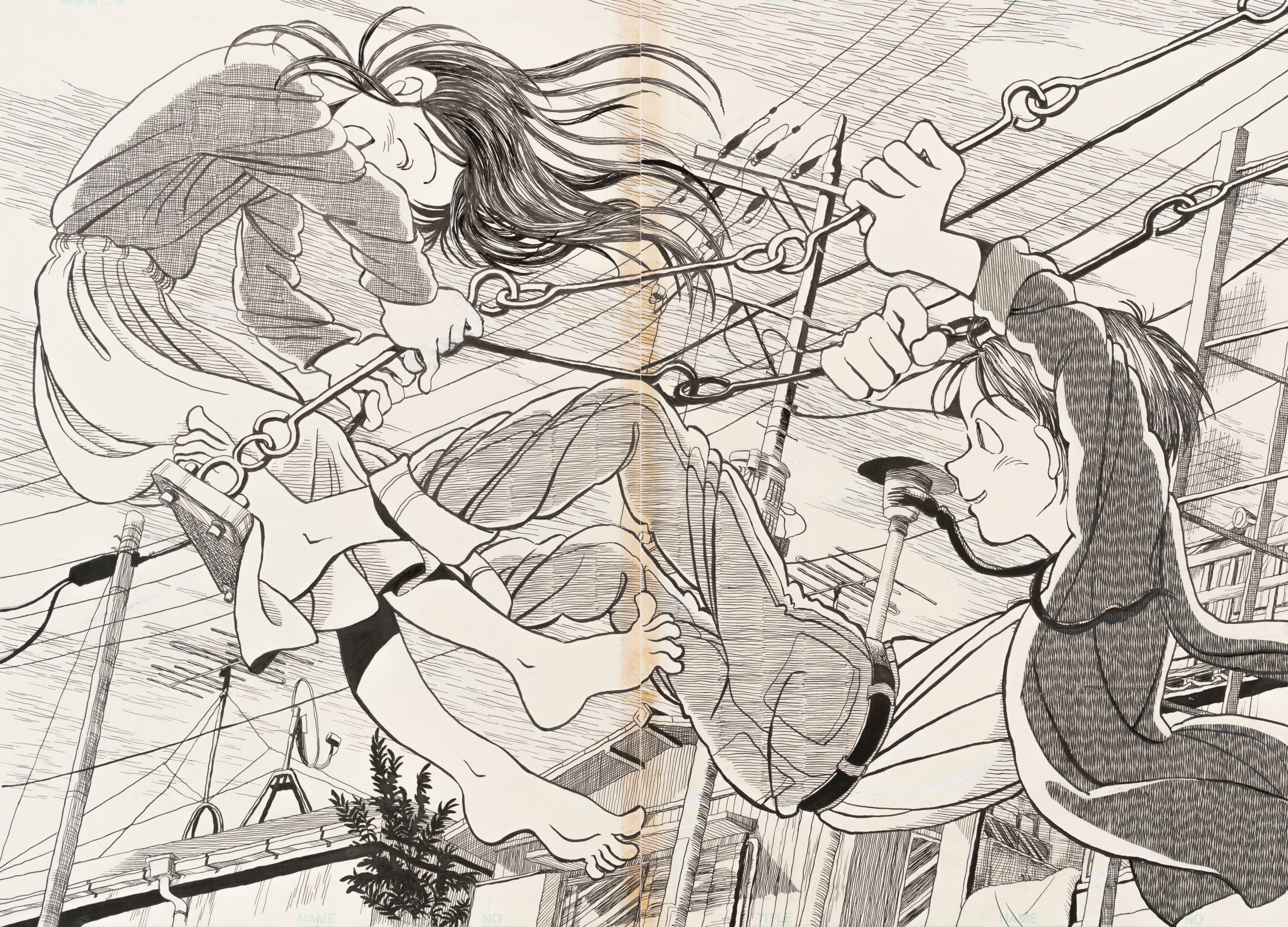 「1枚の絵」としての漫画原画こうの史代はその初期からアシスタントを起用せず、原稿をすべて一人で描いています。着彩も本人がやっています。また一部を除いて、スクリーントーンをほとんど使用していません。原画で私たちが見ているのは、こうの自身の手によって描かれた線です。「1枚の絵」として、その線の躍動