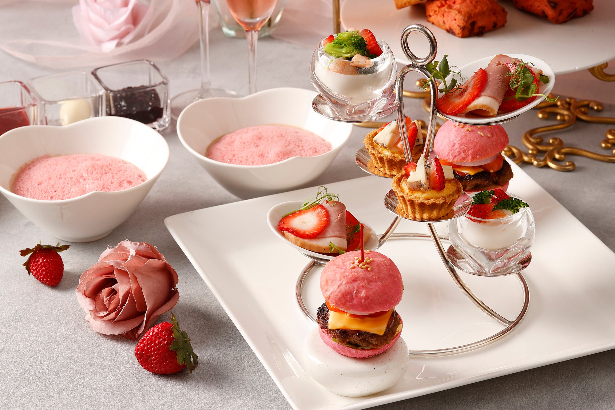 また、東京湾の景色が一望できるフレンチダイニング マンハッタンでは、「マンハッタン特製 ピンクハンバーガー」をはじめ、旬のいちごと鴨肉を合わせた「鴨スモークといちごのマリネ」など、マンハッタン限定のセイボリーを提供いたします。