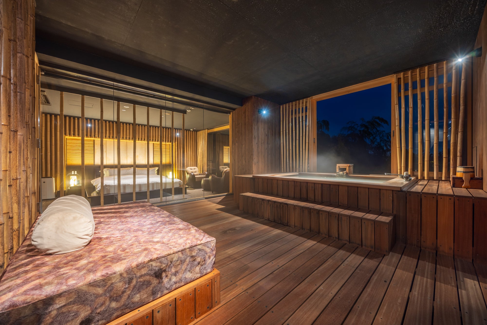 【全館独占】1,000平方メートル の夢の隠れ宿を、たったお二人だけの空間へ 意匠の異なる全9室露天風呂付き客室はもちろん、水盤が広がるBar Bambooや、静謐なSPA施設など、約1,000平方メートル の館内すべてを自由にご利用いただけます。