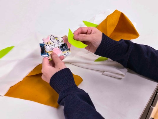 誰でも参加できる地域密着の「体験」ワークショップ「みんなでテーブルクロスをつくろう!」地域密着型のワークショップ「みんなでテーブルクロスをつくろう!」では、ライブペイントを鑑賞するにとどまらず、来場者自ら気軽にアートを体験できる機会を提供します。材料は学生アーティストが実際に制作に使用していた布のハギレ。子どもから大人まで参加者全員で大きな一つのテーブルクロスを制作することで、共同で作品を創り上げる喜びを感じられます。作品の一部を有料でバックやポーチにして、自分だけのオリジナル雑貨として持ち帰ることも可能です。
