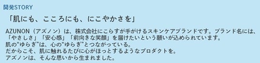敏感肌女性からは「赤みをどうにかしたい」「根拠のある鎮静成分を選びたい」といった声が増えており、こうしたニーズに応えるため、当社はアズレンと13種の整肌成分を組み合わせた『アズノン(AZUNON)』を開発しました。