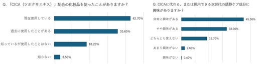 CICAの認知率は96.5%、使用経験率も78.3%に達し、敏感肌ケアの定番成分として浸透しています。一方で、その78.3%が「次世代の鎮静成分に期待している」と回答し、効果実感を求めて“次の選択肢”を探している傾向が見えてきました。