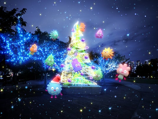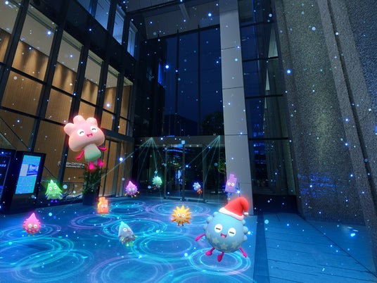 ・5分に一回の"ショータイム"全5か所のスポットの内、3か所では5分に1回ショータイム演出が行われます。街のAIキャラクター「ミナモン」と仲間たちが、イルミネーションやAR演出と連動した1分間の特別なショーを披露します。