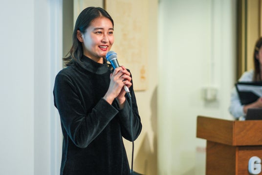 本日はこのような素晴らしい賞をいただけて本当に嬉しく思います。私は今回書いた作品の中で「伝わればいいという価値観が得意ではない」ということを書きましたが、どうしても今のSNSですと音が先行するやりとりが多いので、日本語の意味や正確性があまり重要視されなくなってきてると思っています。それがすごく悲しいというか、寂しいと思っていました。今回、このエッセイコンテストで、それを少しでも共感してほしいし、そういう人もいるなあと思ってもらえたらいいなと思い、今回書いたので、すごく嬉しいです。改めて本日はありがとうございました。