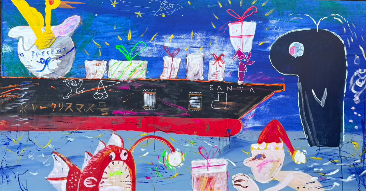 幅6メートルと3メートルの巨大壁画が会場に登場。荒々しい筆致と独自技法「beyond stroke」で知られる福岡出身のアーティスト・鳥越一輝が手がけ、見る者の感情を揺さぶる圧倒的なエネルギーで空間を包み込みます。前衛美術「九州派」の精神を受け継ぐ作品としても注目されています。