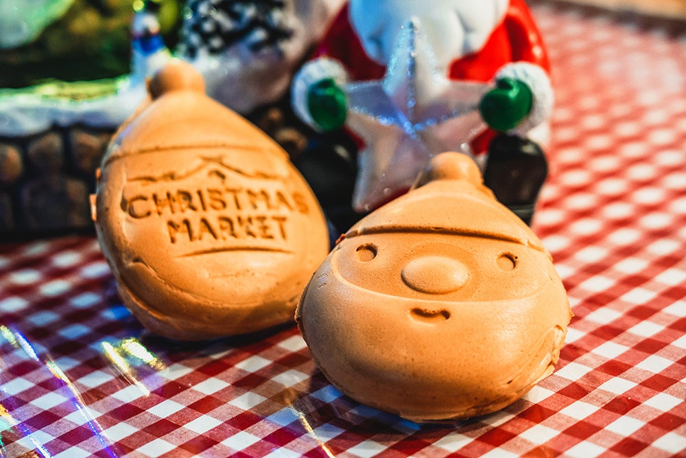 会場を彩るのは、心まで温まる本格グルメの数々。今年は、福岡で人気を集めた12店舗が東京に集結し、本場の味を堪能できます。目玉は毎年福岡で行列ができる名物クリスマスアドベント公式キャラクター「さんちゃん」の人形焼き、粗挽きの豚肉を絶妙に配合し、パリッとはじける皮と芳ばしい旨みが魅力の「ぐるぐるソーセージ」。さらに、寒い夜には東京限定マグで味わう濃厚ホットチョコレートを。とろける口あたりと深いカカオの香りが、冬のひとときを優しく包みます。