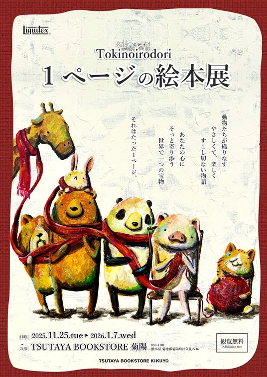 個性豊かな動物たちが織りなす、やさしく楽しい、すこし切ない物語――1ページの絵本『Tokinoirodori』の世界観に浸る個展です。本展では、これまでの創作活動の確かな歩みと、作品ひとつひとつへの真摯な想いが紡ぐ、より豊かで奥深い「時の彩り(トキノイロドリ)」の世界をご覧いただけます。そして今回は、過去最大規模となる原画を展示いたします。 会場に並ぶ原画やドローイングは、あなたの心のポケットにしまっておける、世界でたった一つの宝物。この「1ページしかない物語」は、見る人それぞれの想像をどこまでも広げ、あなただけが描くストーリーとなって、あなたの暮らしに彩(イロドリ)を届けます。