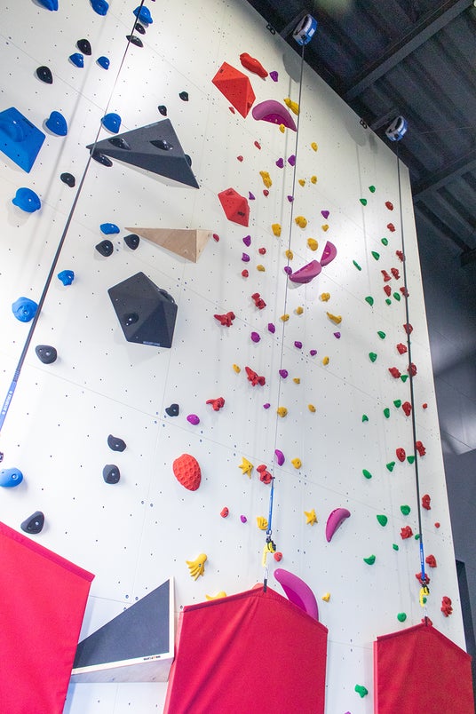 色とりどりのホールドを組み合わせたリードクライミングウォール。難易度の異なるルートを多数用意し、初級者から上級者まで幅広く楽しめます。