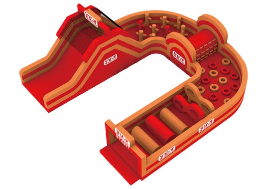 エア遊具(イメージ)--小さなお子さまでも安心して遊べる巨大エアアスレチック。転んでも痛くない柔らか構造で、思いきり駆け抜けて跳ねて楽しめます。