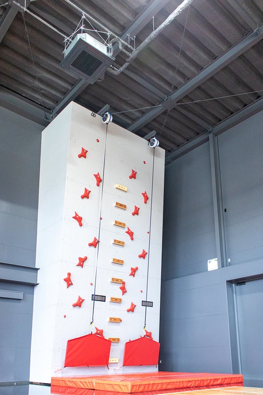 8mの高さを備えたスピードクライミングウォール。タイマー計測機能も搭載し、親子や友だち同士で記録を競い合うことができます。
