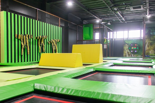 トランポリンエリア(イメージ)--思いきりジャンプし、自由な動きで全身を使って楽しめバランス感覚や体幹の強化にも効果的です。