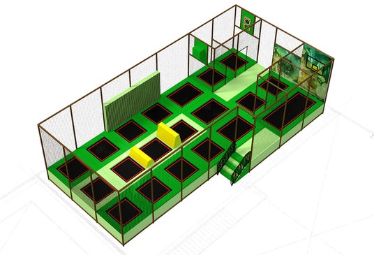 トランポリンエリア(イメージ)--自由にジャンプを楽しめる「フリーゾーン」を中心に、スパイダーウォールやトランポリンダンクなど多彩なゾーンを備えたエリアです。