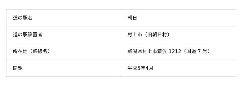 道の駅朝日は、物産会館、食堂、休憩所などからなる「朝日みどりの里」として昭和 61年に開設し、現在では、温泉施設、プール、宿泊施設、屋根付き多目的広場、直売所、貸農園等を備えた村上市の主要観光施設として機能しています。