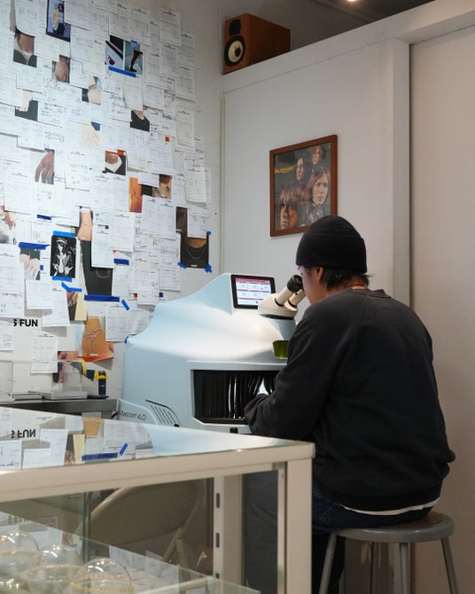 レーザー溶接機を用いた高度な加工によって、チェーンや留め具を自由に組み合わせながら、ネックレス、ブレスレッ ト、アンクレット、リングなど、自分好みのチェーンジュエリーをカスタマイズしていただけるサービスを提供しています。※15分ほどで出来上がります。