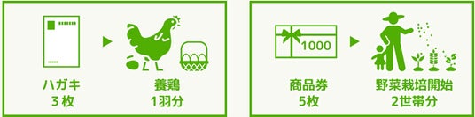 ご家庭にある書損じハガキや切手などの“いらないもの”を手放すだけで、農具の購入、鶏の飼育、自給用の農園など、世界4ヵ国にある活動地の食料生産を支える力になります。