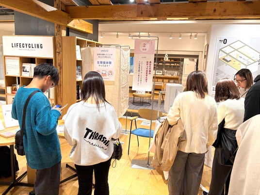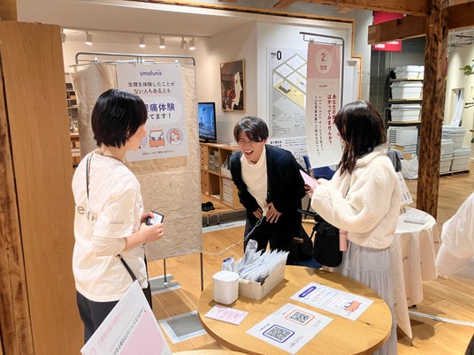 当日は、「無印良品 グランフロント大阪」まちの保健室、大阪府 健康医療部 健康づくり課 生活習慣病・がん対策グループとともに、月経やからだの変化について知る展示やワークショップを実施。トレルナの実機展示のほか、生理痛疑似体験プログラムを提供し、多くの来場者の方々に“気づき”を持ち帰っていただく機会となりました。