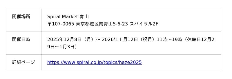 櫨ノ実座(拠点:埼玉県川越市 代表:櫨 佳佑)が展開する現代和蝋燭ブランド「HAZE(ヘイス゛)」は、2025年12月8日(月)~ 2026年1月12日(祝月)の期間、東京・青山スパイラルマーケットにて個展「HAZE 3rd solo exhibition -唯物唯心- 」を開催いたします。