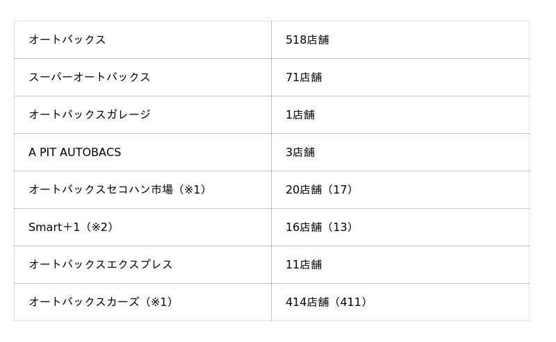 ご参考:オートバックスグループ国内店舗数 計1,054舗