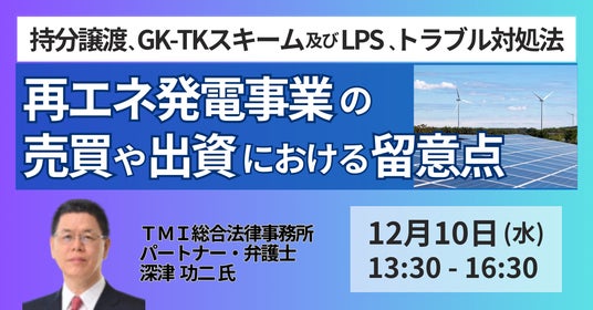 再エネ発電事業の売買や出資における留意点~持分譲渡、GK-TKスキーム及びLPS、トラブル対処法~