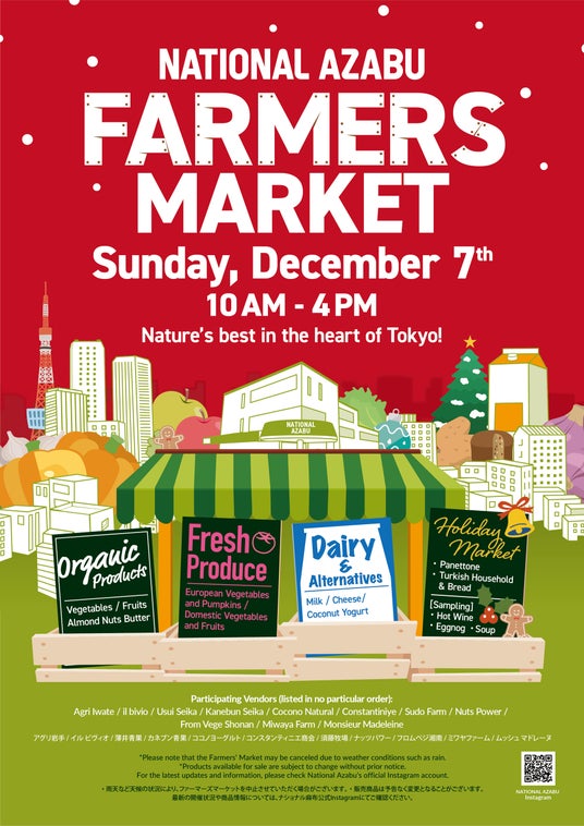 広尾エリアに“冬のにぎわい”を ― クリスマスの雰囲気が楽しめる「NATIONAL AZABU FARMERS MARKET」を12月7日(日)に開催!