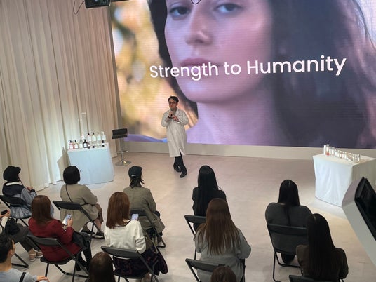 成分ハンター竹岡篤史さんによる「美容成分がもっとよくわかる!」講座 supported by ネイチャーラボを300インチLEDモニターで開催