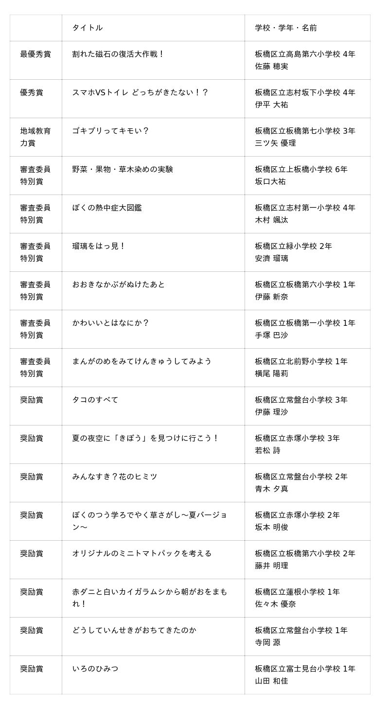 ▼第13回いたばしじゆう研究コンテスト 受賞作品一覧