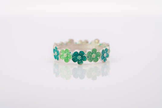 お客様が好きな色を塗り、焼き込むことで色を定着させる七宝焼き技法を使ったおしゃれなエマーユリング