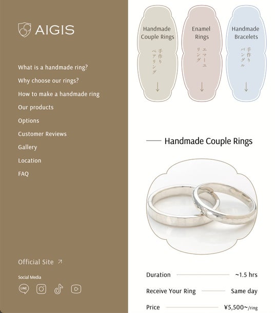 英語版LP:https://aigis-ring.com/en/couple-rings/