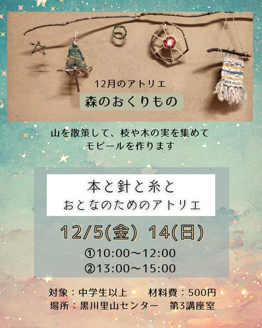 テーマ「森のおくりもの」/自然素材でモビールづくり(自由制作もOK)