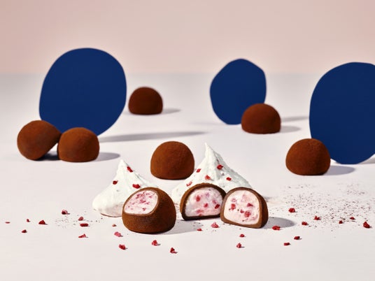 大人気スノーボールが、チョコレート×いちごの誰もが好きな組みあわせとなった「スノーボール 赤」。まろやかなチョコレートと甘酸っぱいいちごの味わいが特徴です。冬の放牧牛乳の香りとコクを味わう生トリュフチョコレートです。