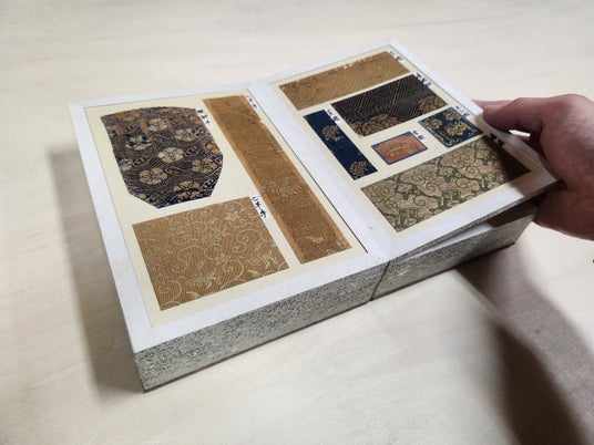 手の中の宝箱古裂帖(裂手鑑)は端裂を集めて貼りこんだアルバムのような折り帖です。