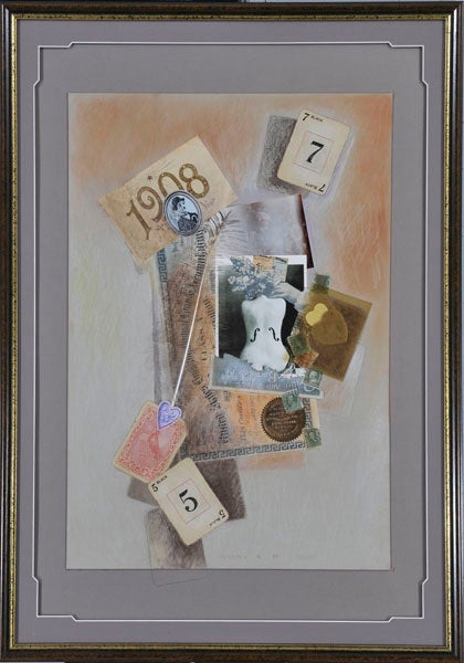 《センチメンタルマグリット (Fantasy in 1908)》 内間俊子 1985 年 コラージュ イメージサイズ:58.0x38.0cm シートサイズ:73.0×51.0cm フレームサイズ:76.7×54.0cm サインあり、年記あり ときの忘れもの (C)Watanuki Ltd. | TOKI-NO- WASUREMONO