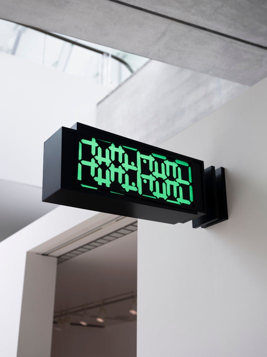 Ryan Gander・Chronos Kairos, 03.02・H 27.0 x W 78.0 x D 15.0 cm・2025・Aluminium, acrylic, LEDs・TARO NASU・(C)Ryan Gander, Courtesy of the artist, Pola Museum of Art, Hakone, and TARO NASU, Photo by Shu Nakagawa
