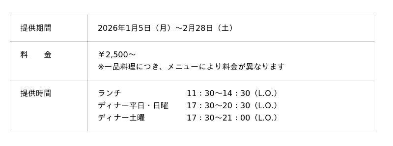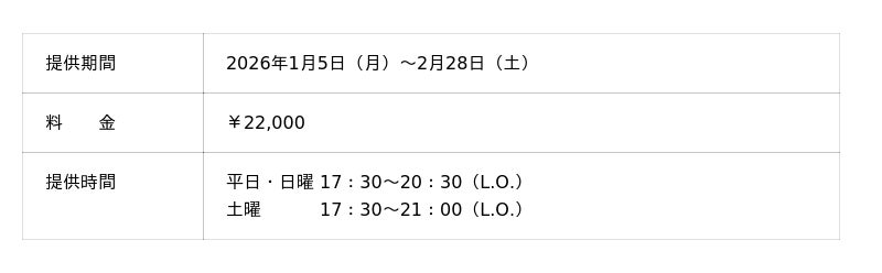 素材の滋味を極限まで引き出した、格別な冬の味わいを存分にご堪能ください。