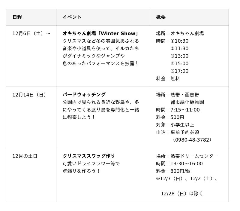 海洋博公園では、園内の最新情報やイベント情報をお届けする広報誌『美ら海通信』2025年12月号を発行いたしました。本号では、海洋博公園で楽しめる様々なプログラムを紹介しております。