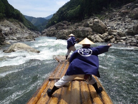筏(いかだ)下りVR体験(関西万博で大人気)清流を下る臨場感をそのままに、爽快感あふれる映像と振動で没入体験。