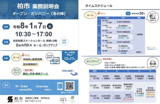 柏市では、行政の仕事や働き方に興味がある方を対象に、様々な部署で働く職員と交流することができる採用イベントを開催します。市役所の業務を理解し、市役所で働くイメージを膨らませてみませんか?この機会にぜひご参加ください!