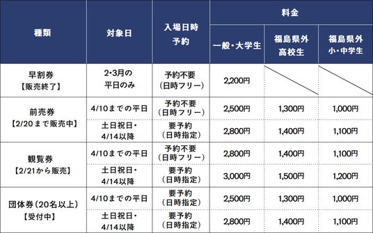 ※土日祝日及び4月14日以降は、土日祝日料金・日時指定予約制となります。