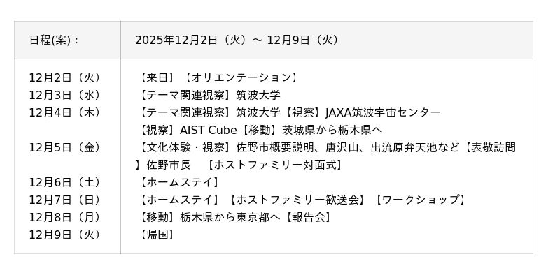 外務省が推進する対日理解促進交流プログラム「JENESYS」の一環として、マレーシアの若手大学関係者10名が下記の日程で東京都、茨城県、栃木県を訪問します。