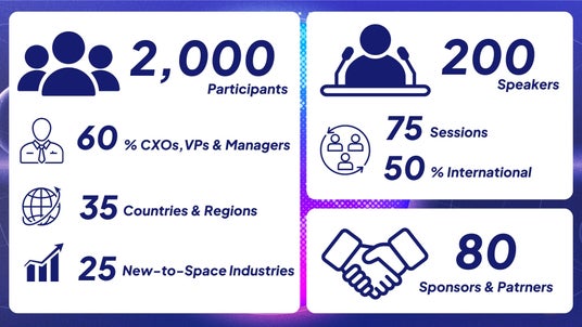 過去最多の総勢2,000名の方にご参加をいただき、200名以上の登壇者の皆様と約75のセッションを通じて、最先端の宇宙ビジネスと未来について議論を交わしました。経営幹部をはじめとする管理職以上のエグゼクティブ比率は6割を超え、35の国と地域からのご来場者をお迎えし、真に国際的なカンファレンスとなりました。