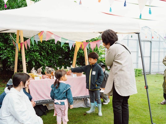 畑を舞台にしたイベントで開いた「子ども八百屋」の様子。畑を中心に、子どもも大人もゆるやかにつながる
