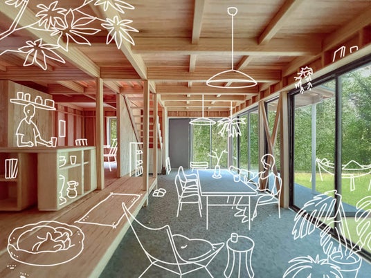 緑の豊かな外の環境を室内に取り込む家。自分好みにカスタマイズできる(イメージパース)